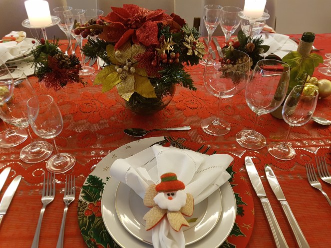 Para um almocinho em família, uma mesinha divertida usando jogos americanos de crochê, guardanapos de algodão vermelho com porta guardanapos feitos por mim. No centro da mesa minha coleção de galinhas artesanais que uso de enfeites na minha cozinha.